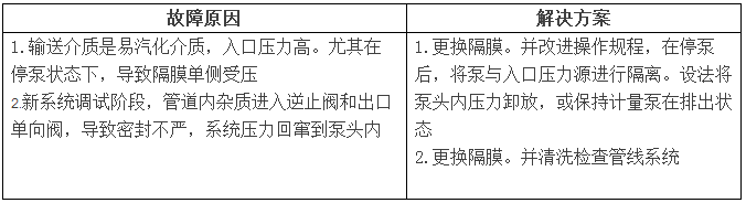 4.3 液压隔膜泵出口没有压力和流量,内置释放阀反复动作